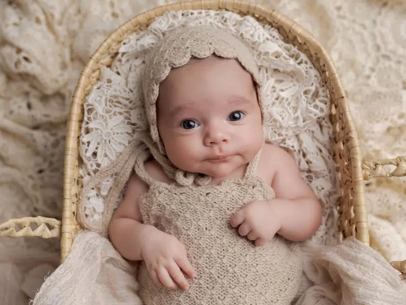 No es necesario. En el estudio dispongo de una cuidada selección de mantas, gorritos, wraps y atrezo diseñado especialmente para fotografía newborn. Solo os pido que traigáis lo esencial para el bebé (biberones, pañales, chupete, etc.).